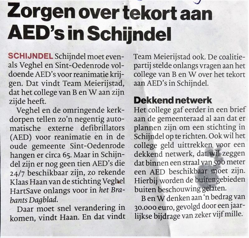 TEKORT AAN AED'S IN SCHIJNDEL26 januari 2019