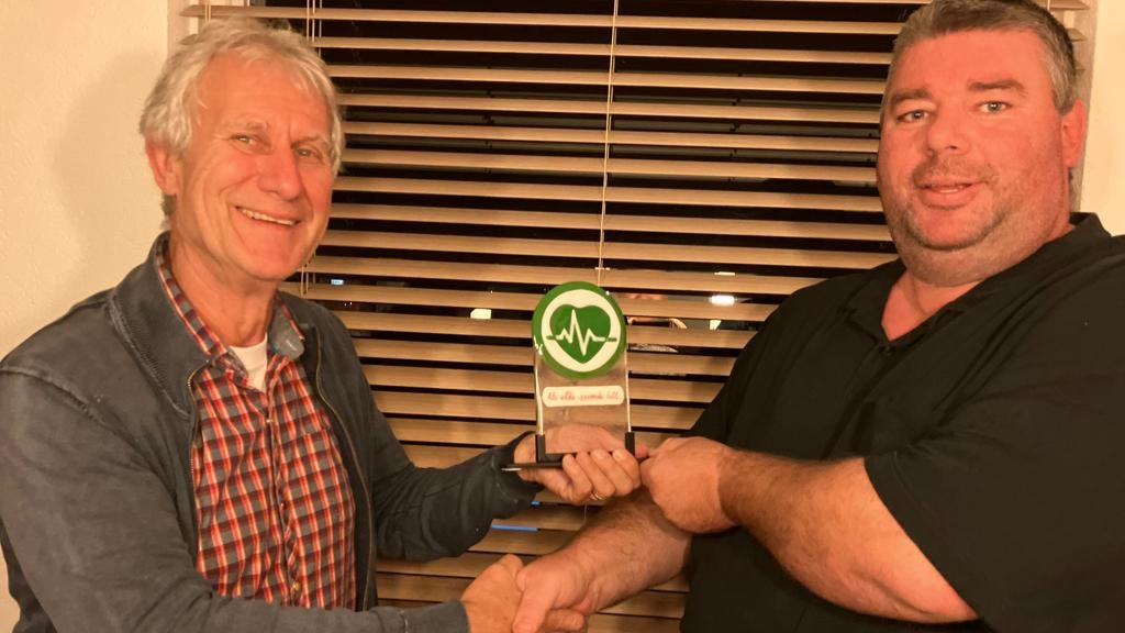 De eerste ‘Als elke seconde telt’-quiz werd in 2023 gewonnen door Richard Huijberts. Hij won de wisseltrofee die hij op de foto uit handen van de voorzitter van Stichting Schijndel Hartsave, Wim van der Rijt, ontvangt. Richard bleek goed de weg te weten in Schijndel, veel mensen te (her)kennen en probleempjes snel op te lossen. Onder de druk van de quiz ‘Als elke seconde telt’ is Richard niet bezweken, hij bleef rustig en effectief. “Het was pittig, maar ik heb me er goed doorheen geworsteld. Ik hield het hoofd koel. Daar ben ik trots op”, zegt hij. “En”, voegt Richard er aan toe: “We mochten gelukkig onze telefoons gebruiken. Daar heb ik effectief gebruik van gemaakt en hulp ingeroepen”.